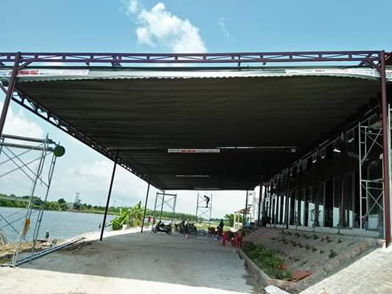 Bạt mái xếp lượn sóng ngoài trời che nắng mưa tại Hải Dương