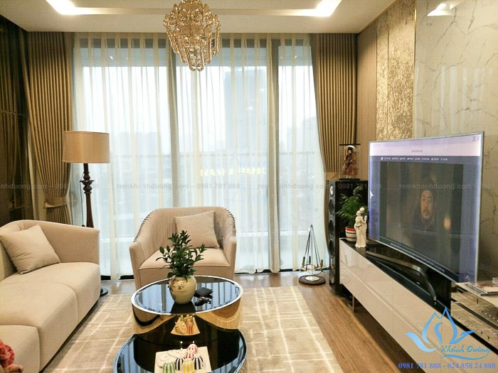 Chọn rèm vải cao cấp sang trọng cho phòng khách TM-75-15 có lớp vải voan đẹp thanh thoát