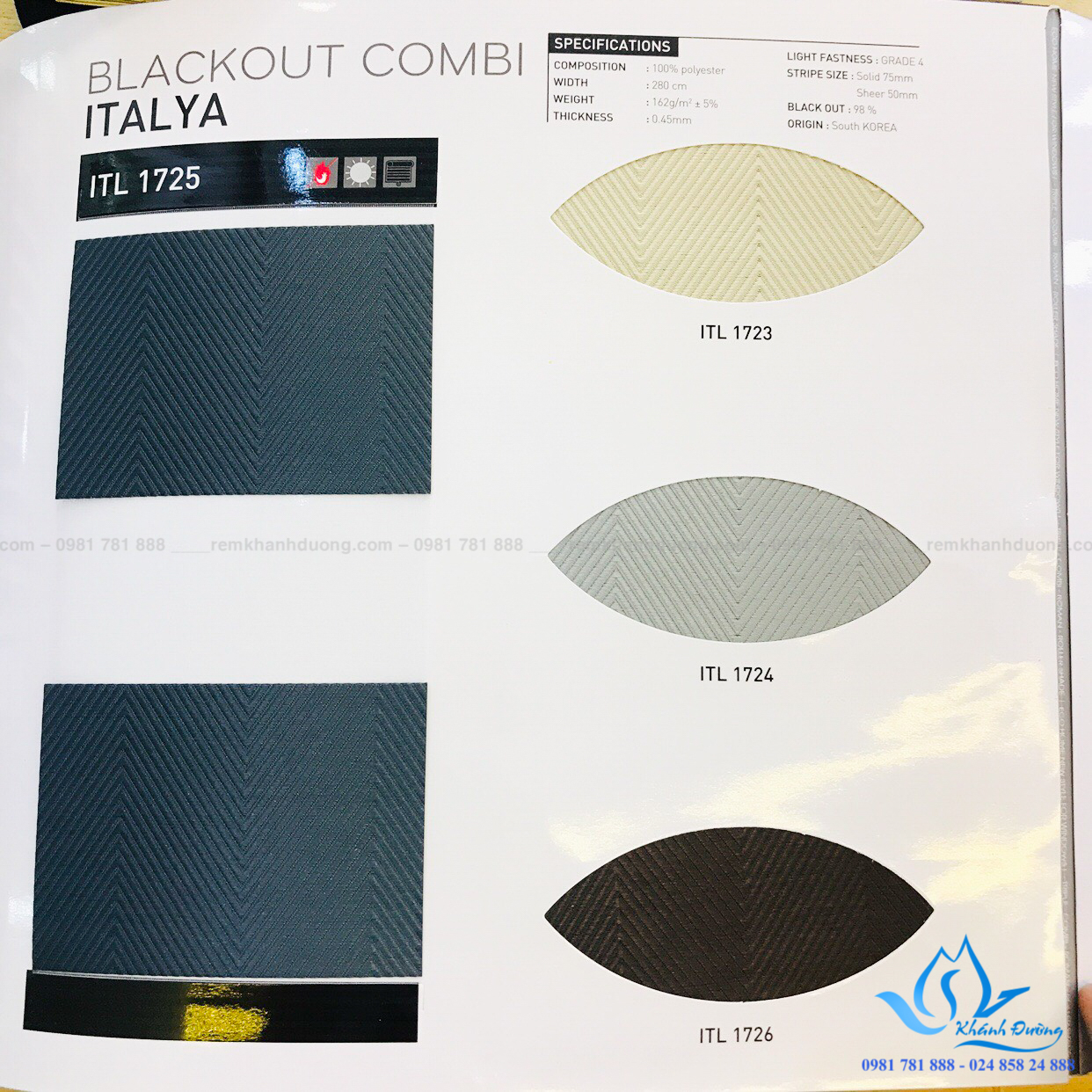 Rèm cầu vồng ITL 1725 được dệt chủ yếu từ sợi polyester thành hai vân khác nhau