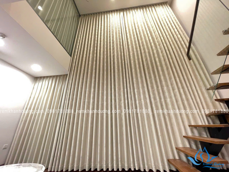 Mẫu rèm vải thông tầng 2024 sang trọng cho phòng khách tại Long Biên, Hà Nội