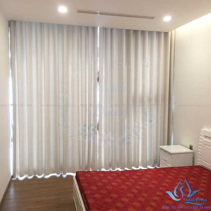 Rèm vải phòng ngủ luôn là một trong những mẫu rèm chất lượng cao được nhiều khách hàng tại khu vực Hà Nội sử dụng cho những khung cửa lớn. Mẫu rèm vải 2 lớp này khiến cho căn phòng trở nên sang trọng, cuốn hút nhưng không quá cầu kỳ, rườm rà bởi họa tiết đơn giản tinh tế trên tấm vải voan kèm màu sắc nhã nhặn. Hơn nữa, nó thích hợp cho những phòng ngủ của căn biệt thự hướng sáng hoặc những căn chung cư cao tầng luôn bị nắng soi chiếu.