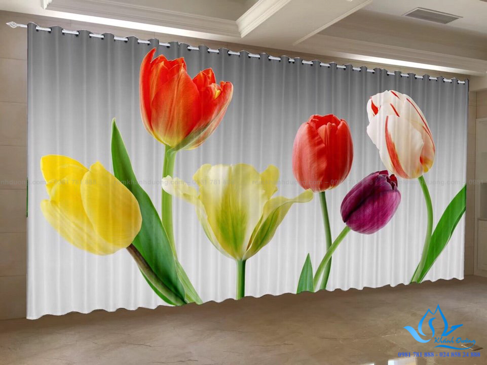 Rèm vải in tranh 3D thường có rất nhiều chủ đề như động vật, nhân vật hoạt hình, đại dương, sông núi,… và trong đó không thể bỏ qua hình ảnh những loài hoa quen thuộc.