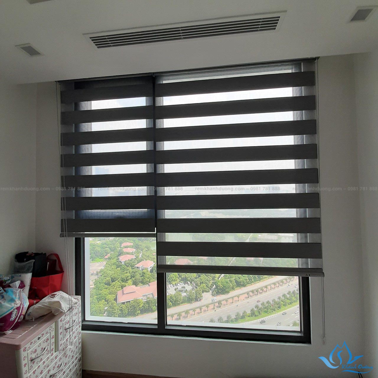 Dòng rèm cầu vồng nói chung và mẫu rèm HY 741 nói riêng có thiết kế rất đẹp mắt, phù hợp với nhiều không gian nội thất khác nhau như nhà ở, văn phòng, biệt thự, khách sạn,… Nhưng có lẽ nó vẫn là đẹp nhất với những nơi theo hơi hướng hiện đại. Nó gọn nhẹ, đơn giản nhưng chính chất liệu và kiểu dáng của nó lại toát lên vẻ sang trọng, đẳng cấp mà những dòng rèm cuốn thông thường không có được. Rèm HY 741 được lắp đặt tại Green Bay Mễ Trì có màu nâu đen trầm sang trọng. Đây là một trong những tone màu cơ bản nhất của đồ nội thất nên bộ rèm không hề khó kết hợp cùng với những đồ vật khác trong phòng.