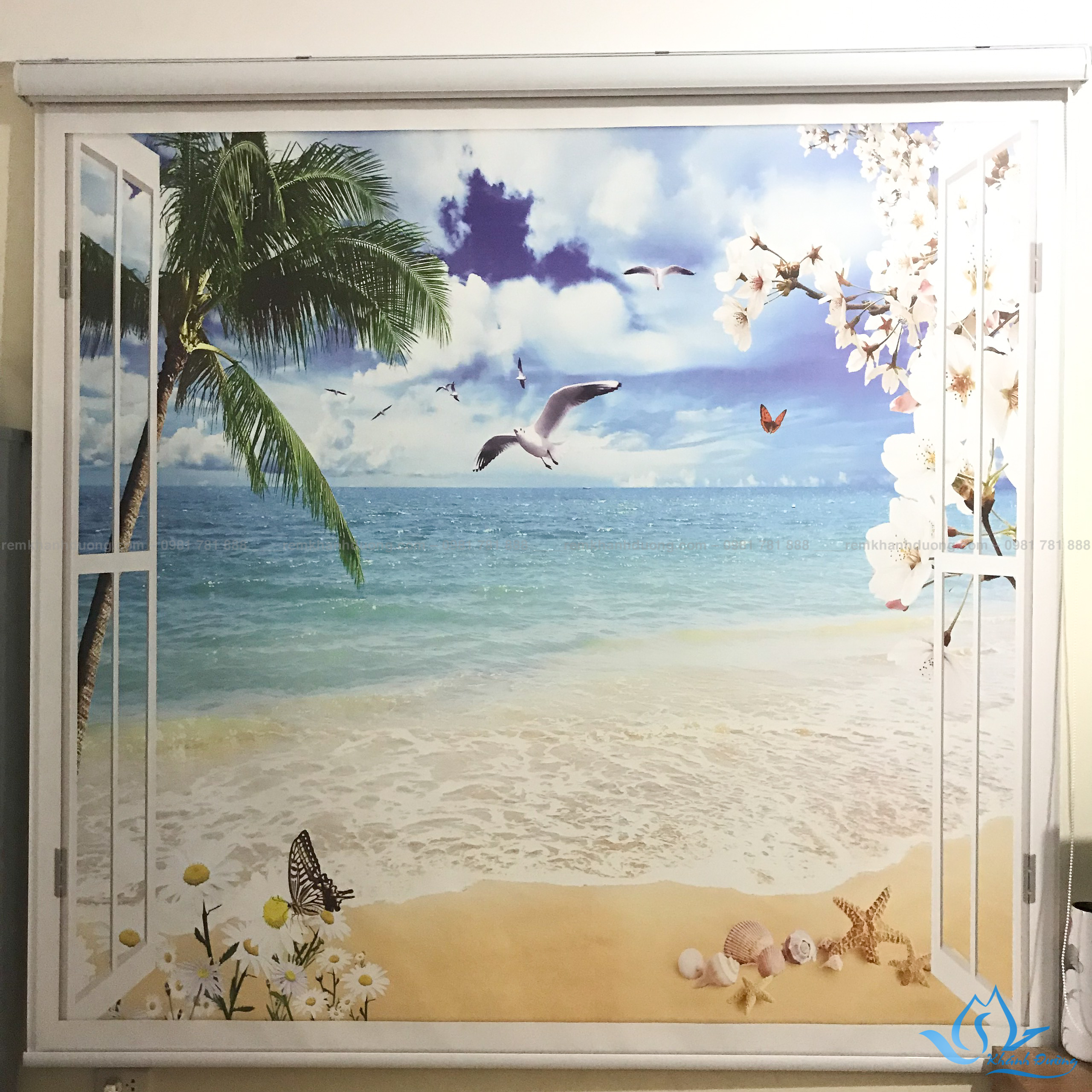 Rèm cuốn là một lựa chọn không tồi cho cửa sổ gia đình bạn bởi giá thành rẻ, chống nắng tốt, sử dụng dễ dàng. Tuy nhiên loại này thường chỉ có một màu nên tính thẩm mĩ không cao. Để khắc phục nhược điểm này thì Khánh Đường chúng tôi đã cho ra đời dòng rèm cửa cuốn tranh 3D với cấu tạo y như rèm cuốn nhưng đã dùng công nghệ in ấn hiện đại để tạo nên bức tranh ngay trên vải rèm. Nếu bạn đang quan tâm dòng rèm này thì không thể bỏ qua mẫu CP-38 với họa tiết cảnh biển vô cùng bắt mắt dưới đây.