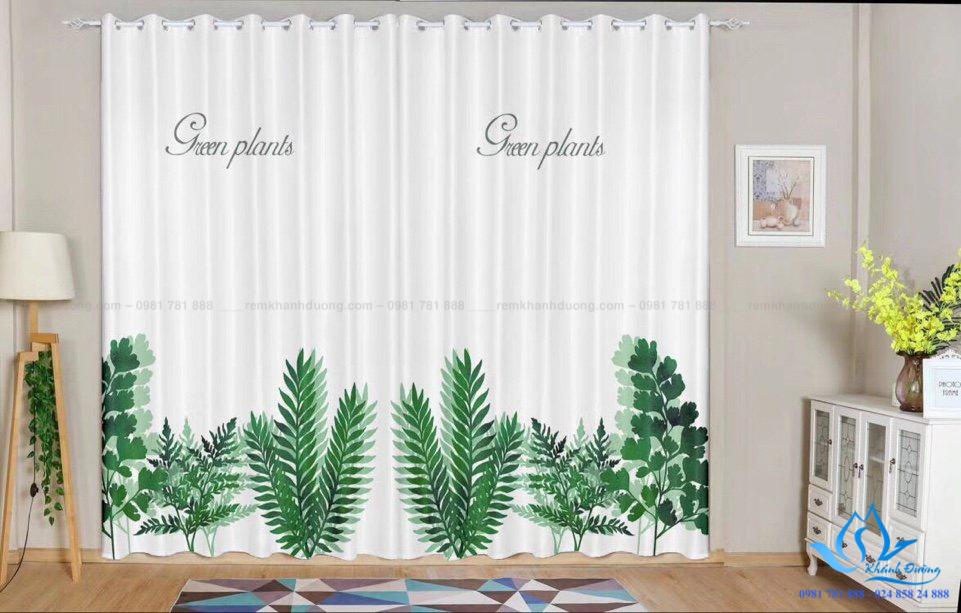 Rèm vải in tranh hình cây xanh cho phòng khách thoáng mát