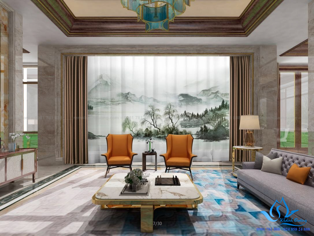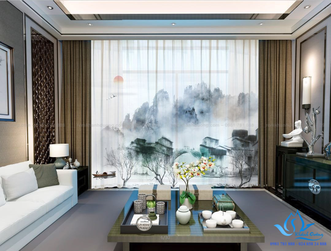 Phòng khách là không gian vô cùng quan trọng của ngôi nhà bởi đây là nơi tiếp khách và là nơi sinh hoạt của các thành viên trong gia đình. Vì vậy, đây là không gian cần sự bày trí cẩn thận và chỉn chu. Việc chọn rèm cửa cũng vô cùng quan trọng đối với việc trang trí phòng khách. Rèm Khánh Đường tự tin mẫu rèm cửa vải in tranh RT19 có thể đáp ứng nhu cầu của các vị khách để tạo nên được một không gian phòng khách sang trọng và tinh tế. Rèm cửa vải in tranh RT19 được in những hình vẽ thiên nhiên được thiết kế mang phong cách cổ điển như những bức họa thời xưa của Trung Quốc mang đến vẻ đẹp ấm áp, gần gũi nhưng vẫn vô cùng sang trọng.