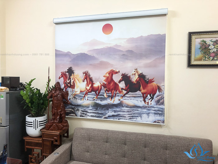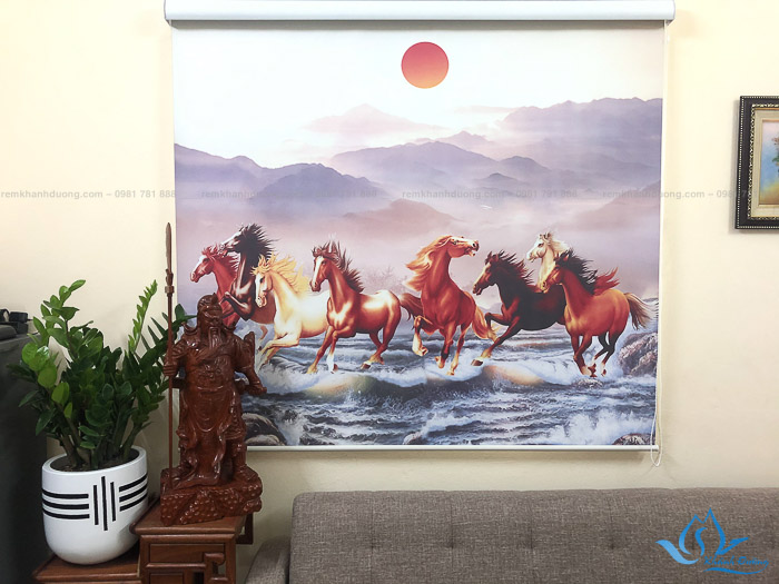 Rèm cuốn cản sáng ngăn tia UV in tranh ngựa mã đáo thành công tại Hà Nội