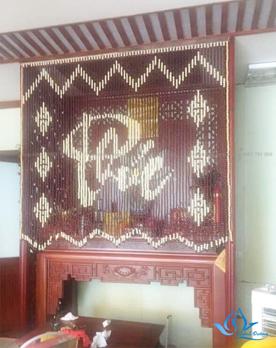 Rèm hạt gỗ bồ đề phong thủy đan chữ phúc cho không gian phòng thờ