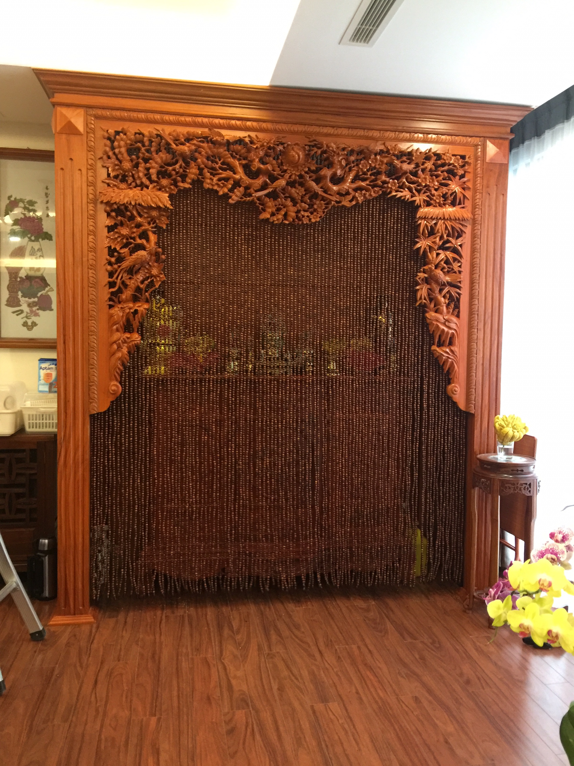 rèm hạt gỗ phòng khách phong thủy gỗ hương đỏ