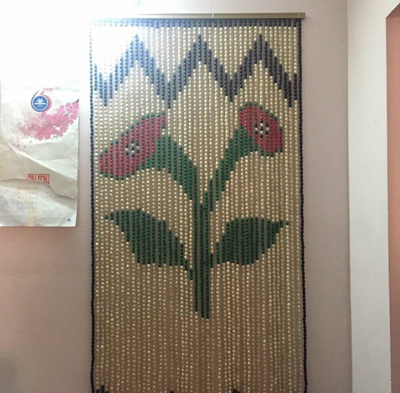 Rèm hạt gỗ thông tuyết đẹp in hoa văn