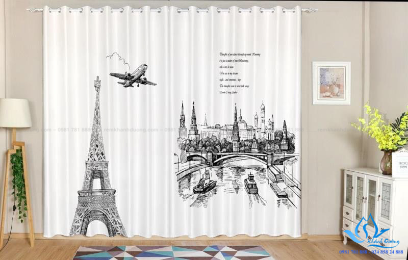 Rèm in tranh 3D hình ảnh hiện đại cho bạn trẻ tại Nguyễn Biểu RT28