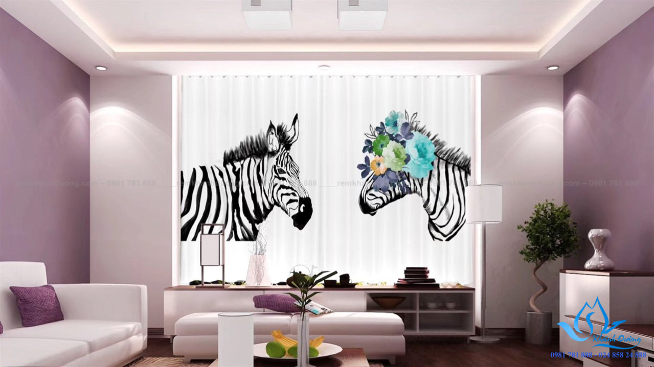 Rèm in tranh 3D RT18 có hình ngựa vằn sống động