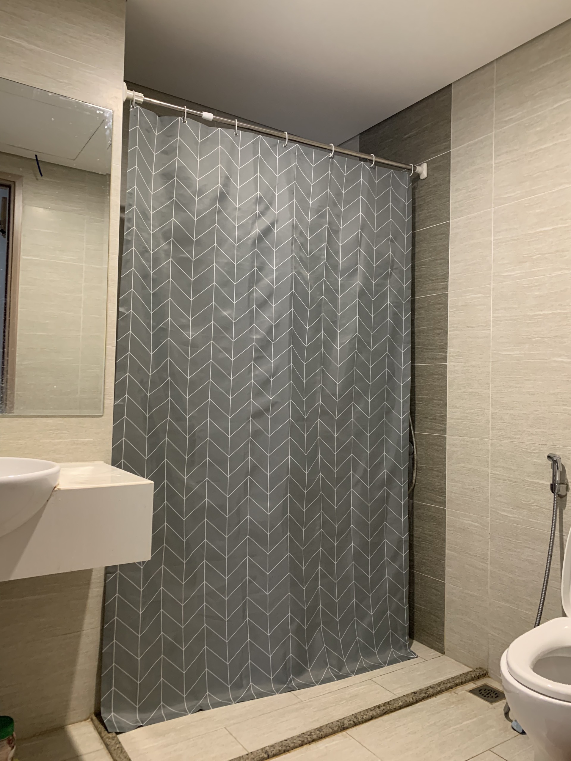 – Hiện nay chúng tôi đang có 30 mẫu rèm phòng tắm mới hót thị trường, với chất liệu vải rèm phòng tắm trượt nước chống nấm mốc.
