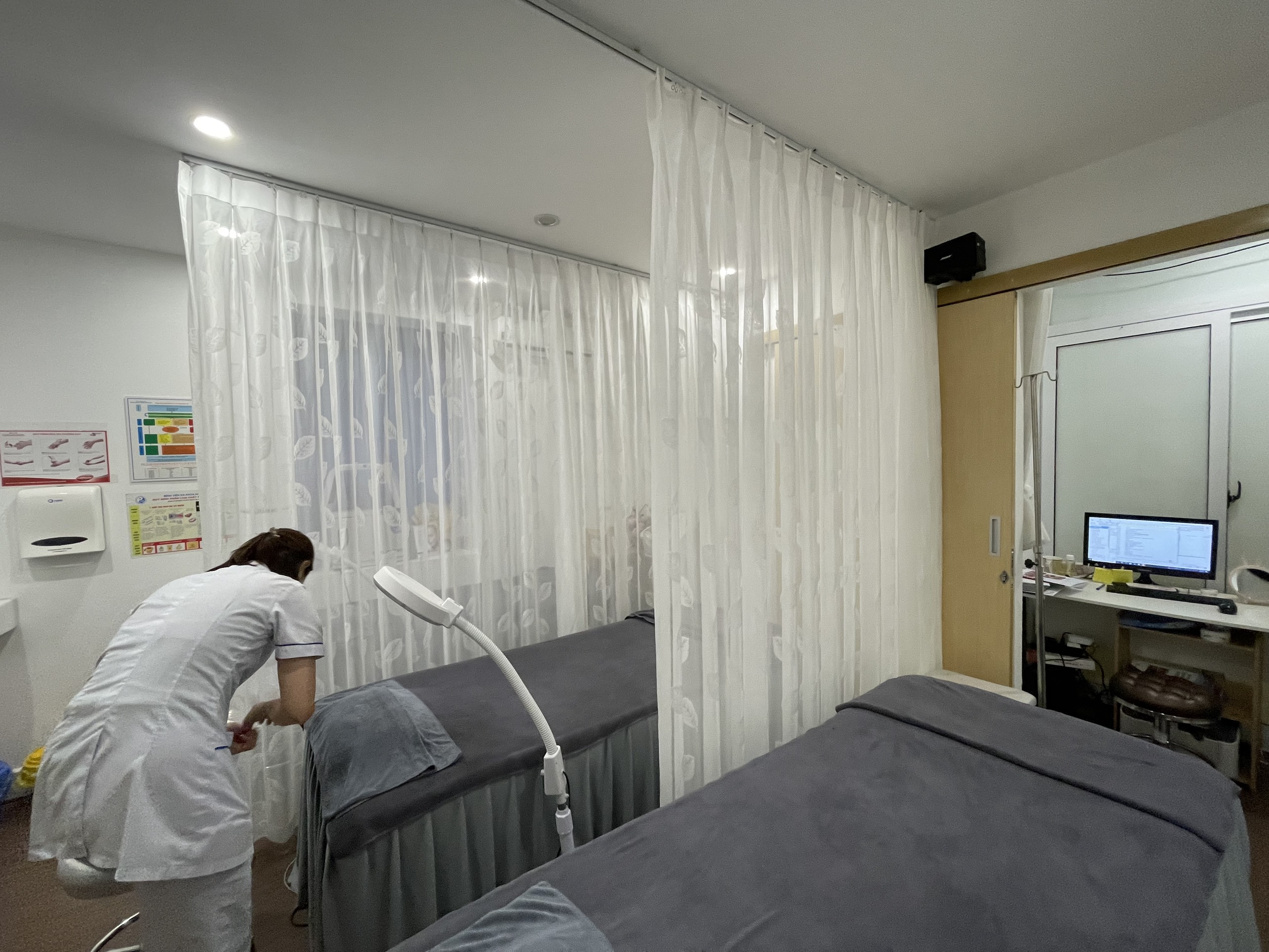 Rèm spa họa tiết lá cho khu thẩm mỹ bệnh viện Hòe Nhai Ba Đình