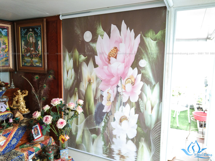 Trong bài viết này, rèm Khánh Đường sẽ giới thiệu đến quý khách mẫu rèm tranh in thường không máng RT36 được chị Hương chọn lựa lắp đặt cho không gian phòng thờ của gia đình tại Quận Long Biên, Hà Nội.