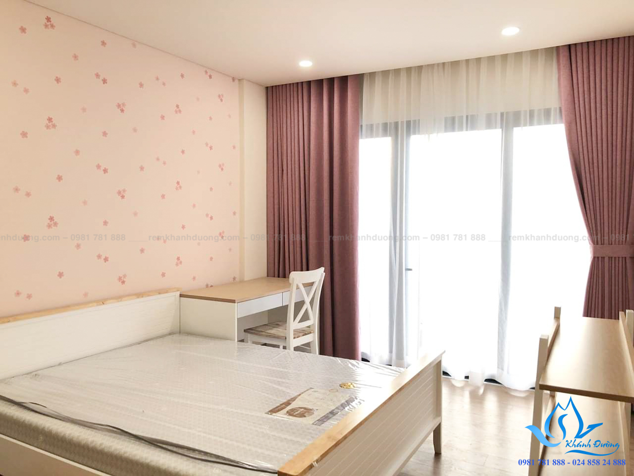Rèm vải hai lớp màu hồng cho phòng ngủ quyến rũ và ấn tượng tại Hà Nội