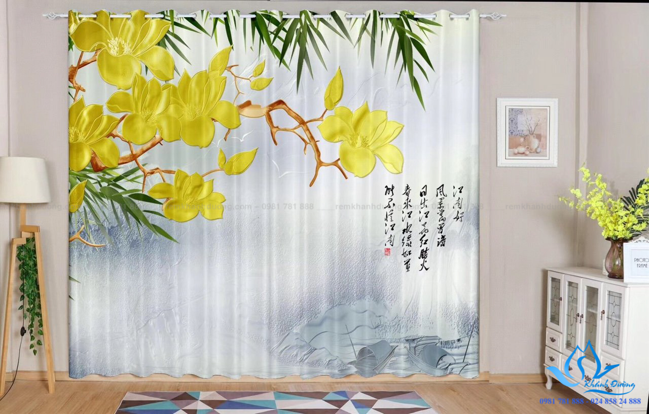 Rèm vải in tranh 3D RT26 có thể sử dụng ở mọi không gian trong ngôi nhà của bạn từ phòng khách, phòng ngủ đến phòng ăn. Bởi đây là mẫu rèm có hình ảnh hết sức đa dạng nhưng vô cùng hợp với thẩm mỹ chung của người Việt Nam. Mẫu rèm in hoa được thiết kế giống bức tranh cổ điểm thêm một dòng thư pháp sẽ rất phù hợp với phòng khách của gia chủ yếu thích vẻ thanh lịch, tinh tế. Với hình ảnh trên rèm như vậy sẽ rất phù hợp khi sử dụng những đồ nội thất bằng gỗ mang vẻ đẹp cổ điển