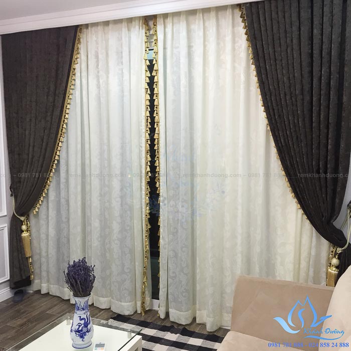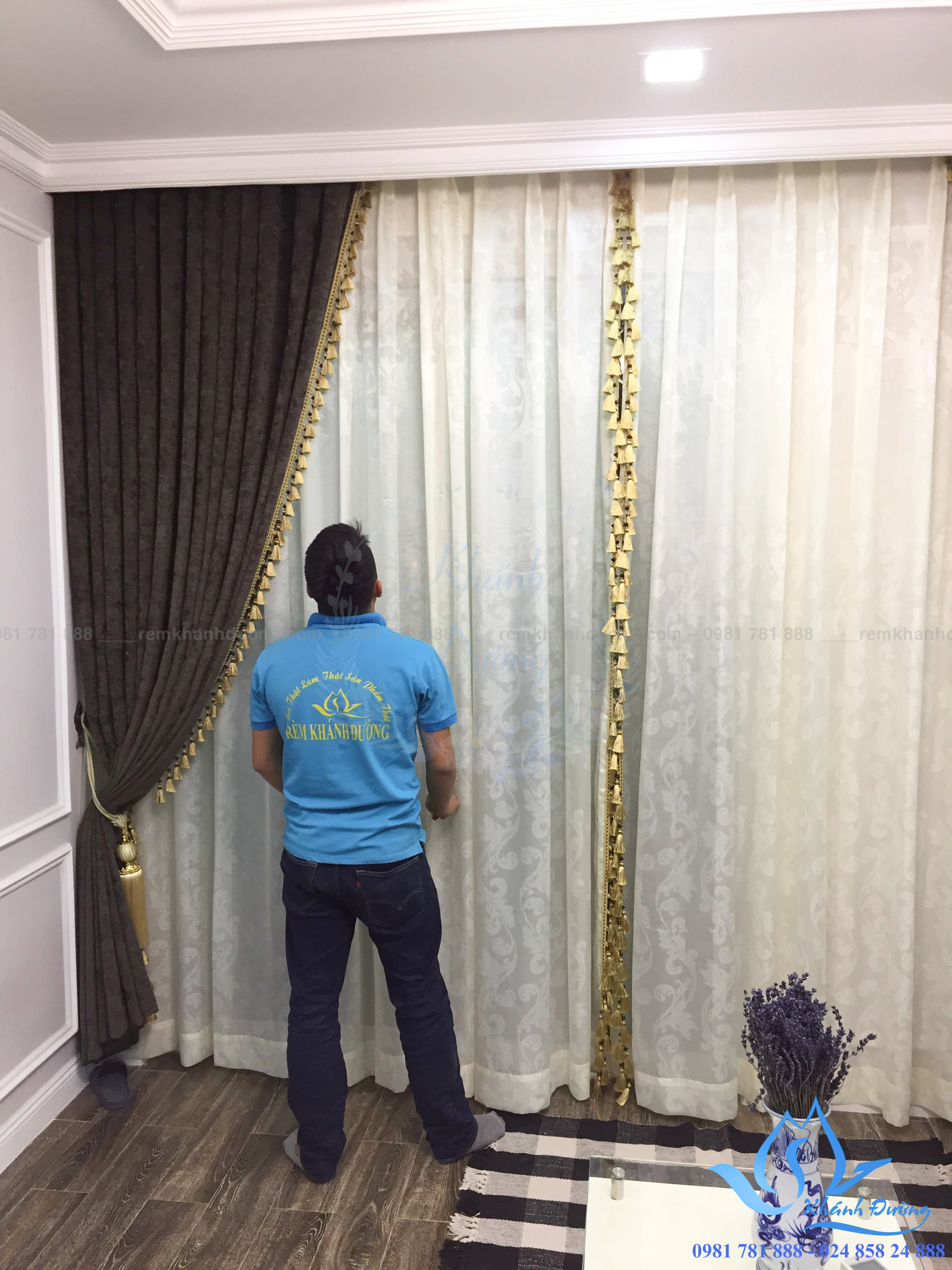 Rèm vải nhung cổ điển cao cấp phòng khách Ngã Tư Sở, Hà Nội BW 778618