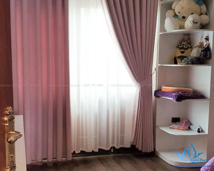 Rèm vải phòng ngủ 1 màu cho phòng bé gái tại Kim Giang, Hà Nội H112A