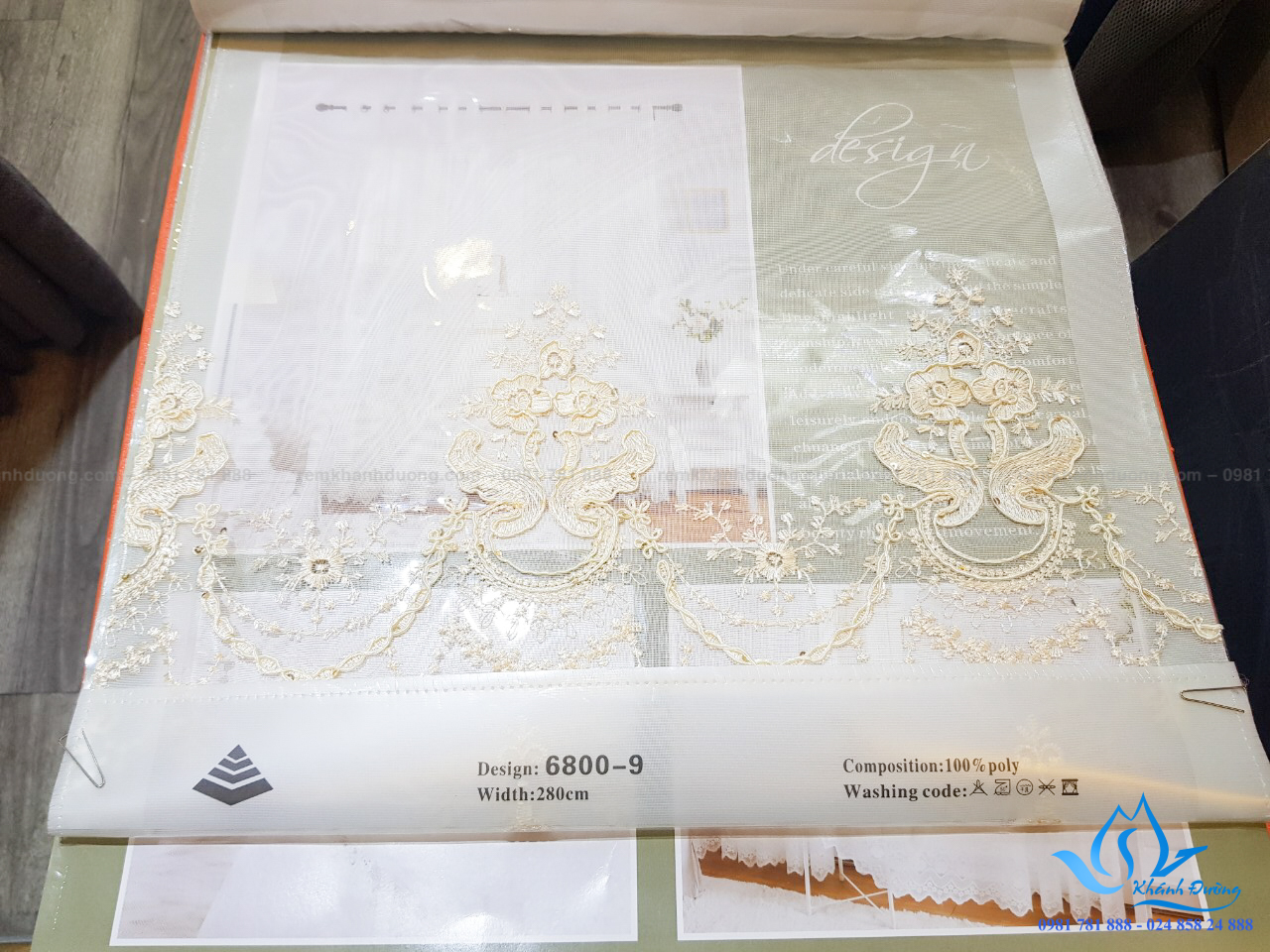 Rèm vải tân cổ điển cao cấp cho phòng khách 6800-9 có vải voan mong nhẹ thêu hoa đẹp