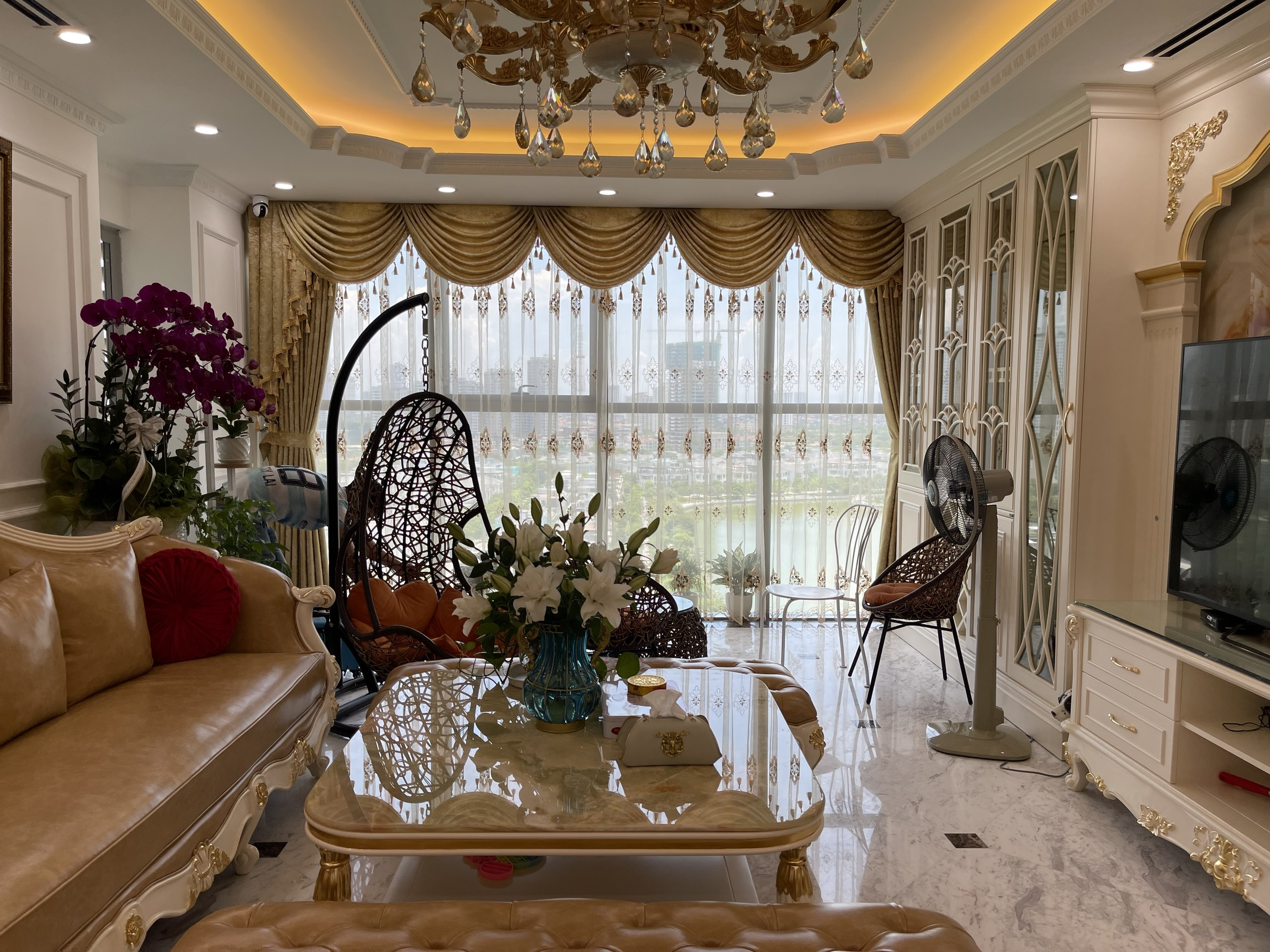 Rèm vải tân cổ điển hoàng gia vải Thổ Nhĩ Kỳ cho căn hộ cao cấp Thong Long Number One