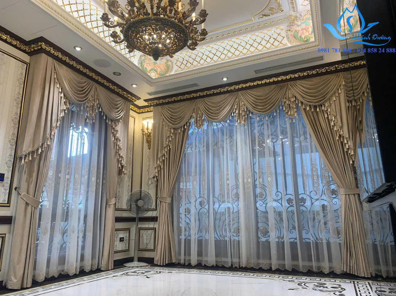 Rèm vải tân cổ điển với thiết kế hoàng gia cho biệt thự tại Gamuda Gardens
