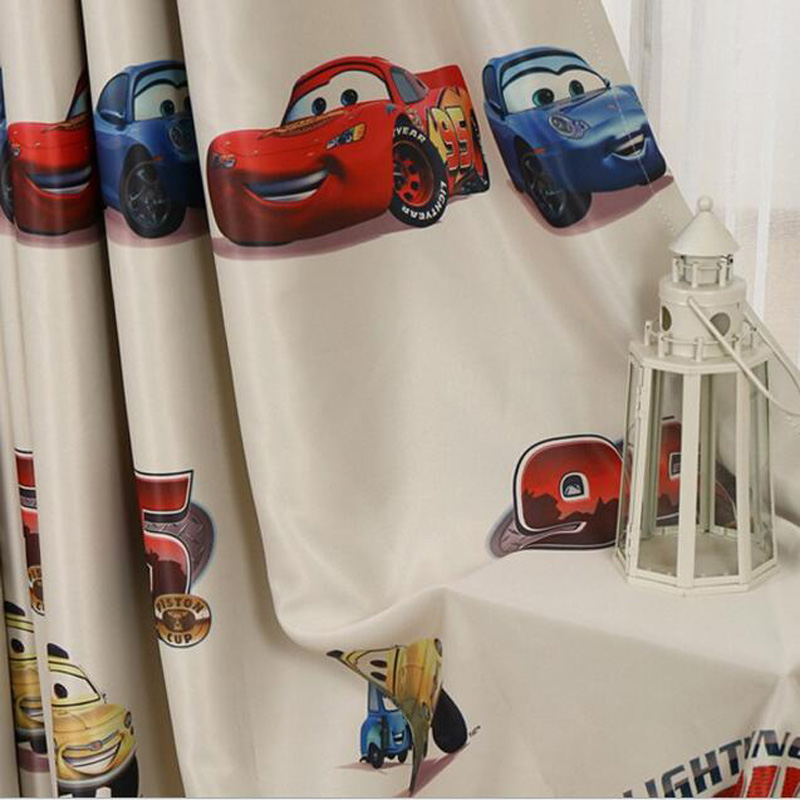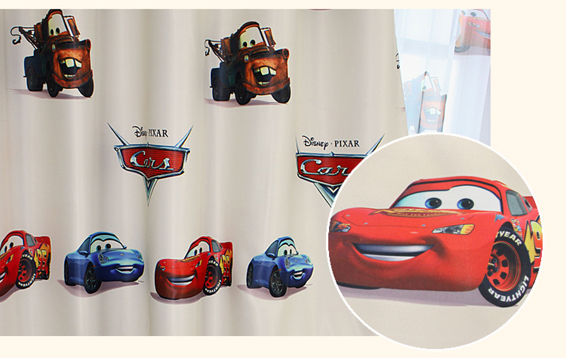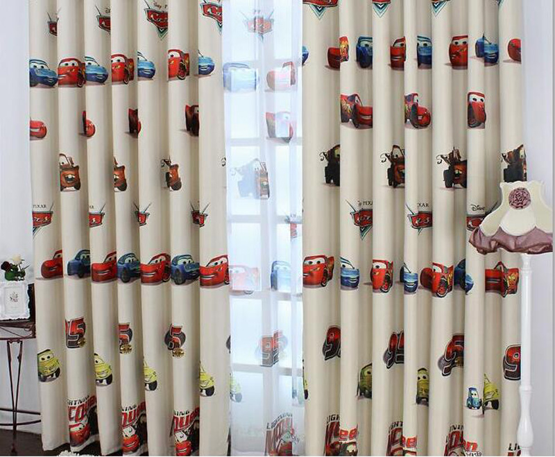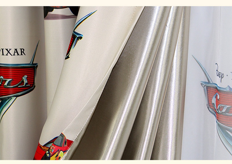 Rèm có tông màu chủ đạo là trắng kem giúp căn phòng trông sáng sủa mà không làm nhức mắt bé. Cả hai lớp vải đều được in họa tiết được lấy cảm hứng từ bộ phim hoạt hình vương quốc xe hơi.