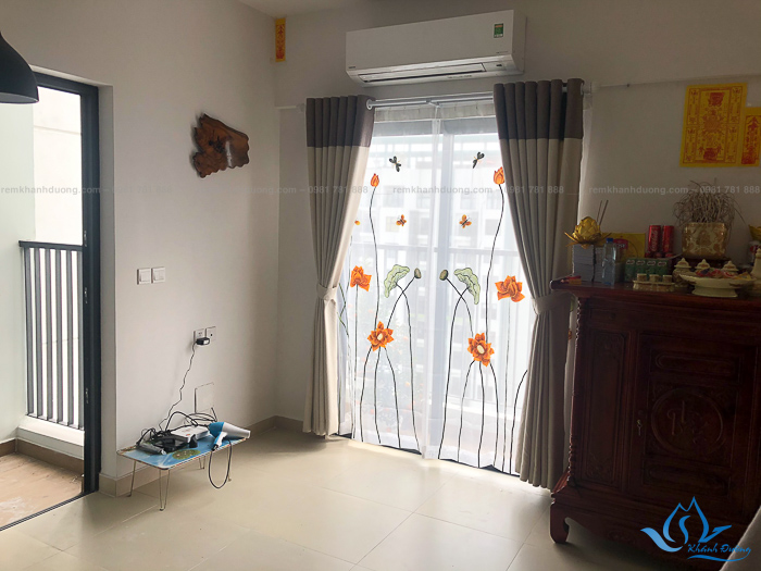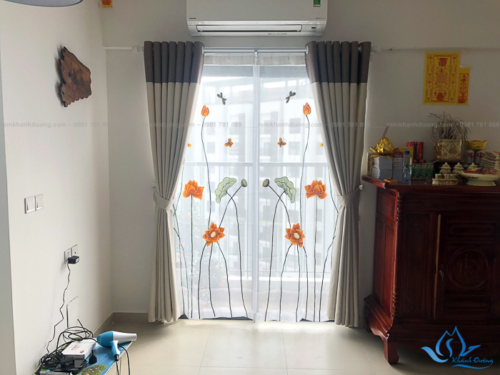 Rèm voan thêu tay hoa sen đẹp cho phòng thờ tại Sky2 Aquabay, Hưng Yên P2912
