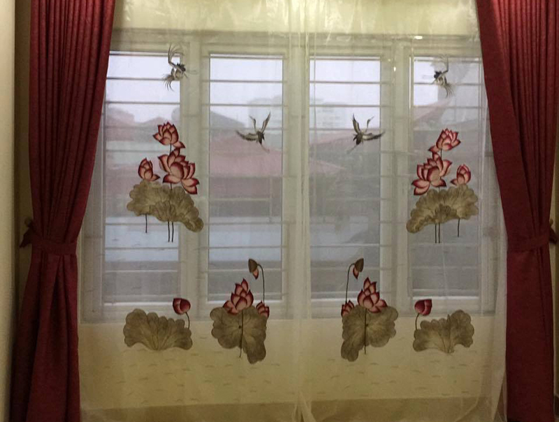 – Chất liệu    : Vải polyester + voan cát thêu tay thủ công