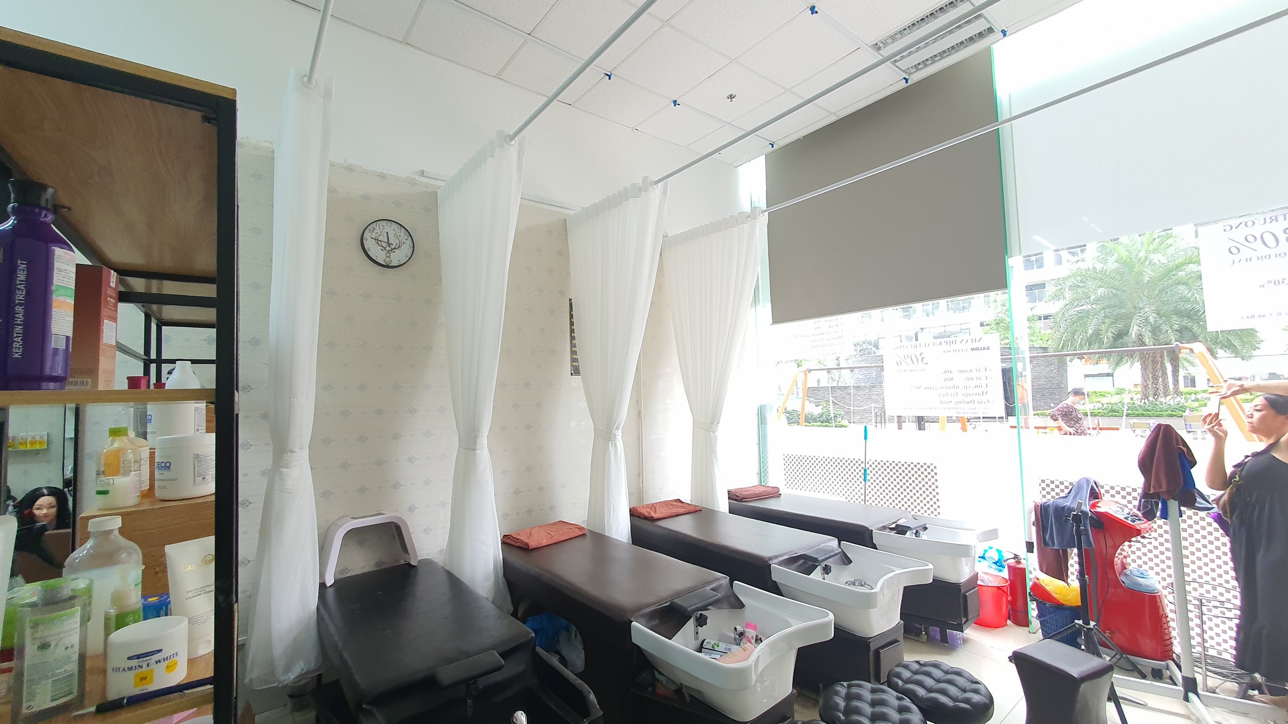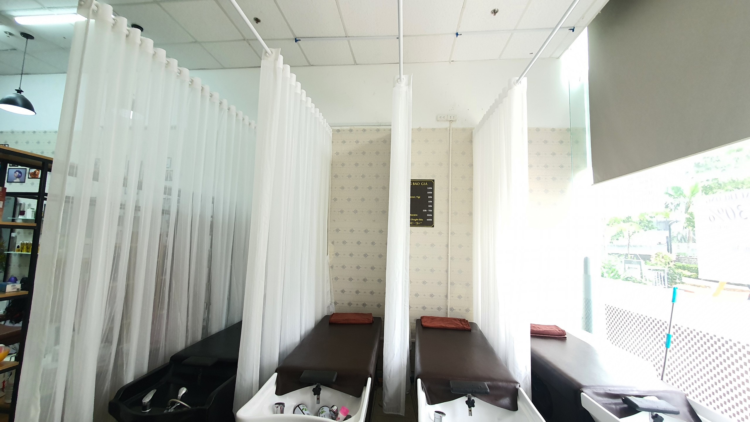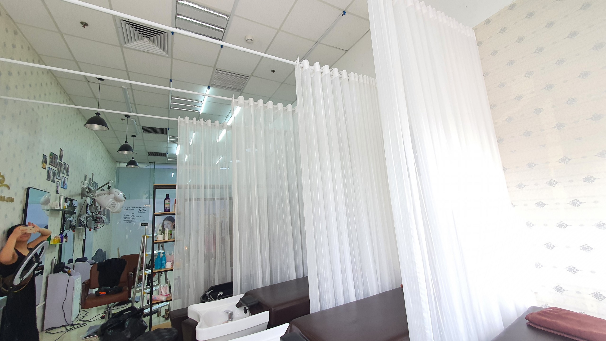 Rèm voan trắng ngăn giường cho Salon tóc tại Tòa D inperia Garden 143 Nguyễn Tuân